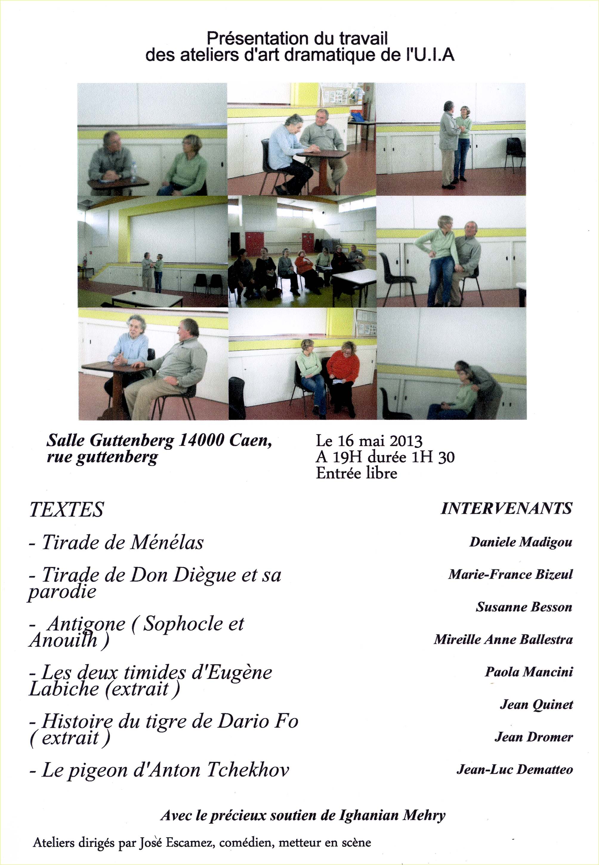 Présentation du travail des ateliers d'art dramatique de l'UIA