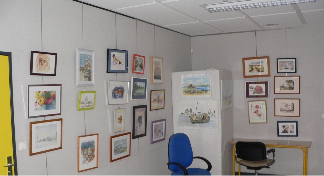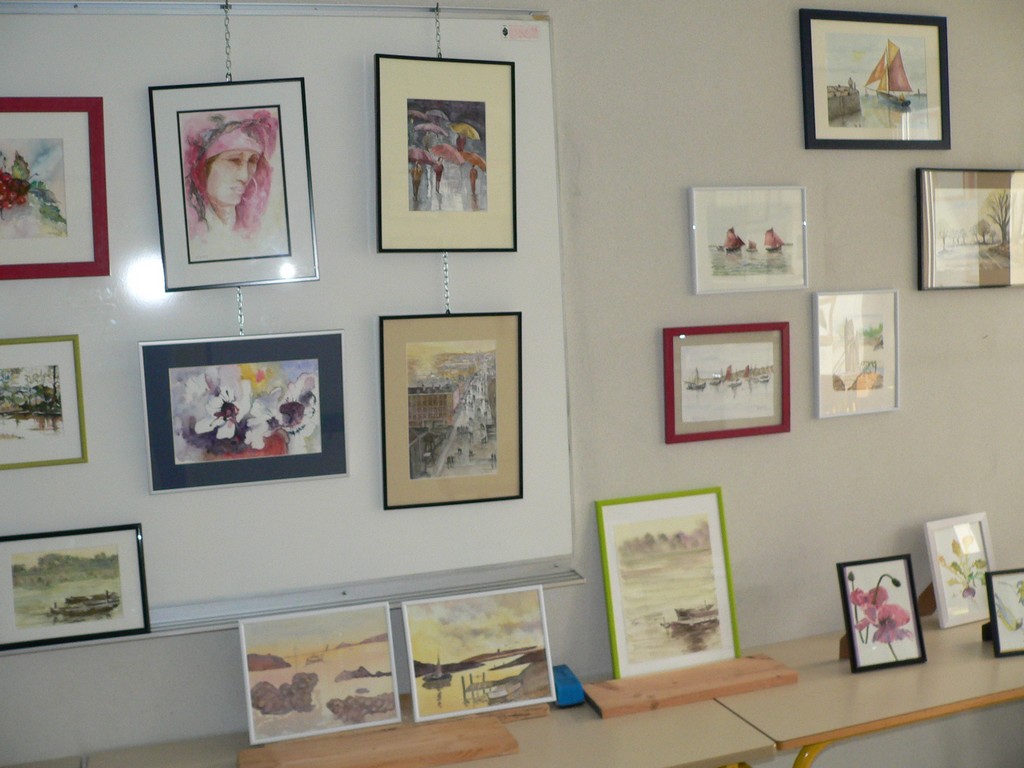 Les étudiants des cours d’aquarelle répondirent présents en acceptant de déposer dès le vendredi matin11 mai les œuvres qu’ils avaient réalisées lors des cours prodigués par nos deux enseignants, Patrick MAZEAU et Joël VILLLEDIEU.